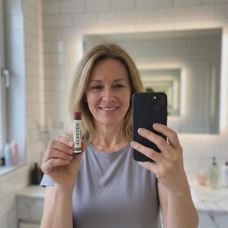 ELASTEN® Trink-Kollagen, eine Innovation aus Deutschland, ist weltweit beliebt. Sie beinhalten den einzigartigen [HC]-Kollagen-Komplex®, welcher eine besonders hohe Übereinstimmung mit dem natürlichen Kollagen des Menschen aufweist, wodurch ELASTEN® effektiv, wirksam und sehr gut verträglich ist. Vertrauen Sie dem Original für schöne Haut von innen. Es verbessert nachweislich die Kollagenbilanz, wodurch feine Fältchen weniger sichtbar sind.* Für strahlendes Aussehen mit bewiesener Wirksamkeit.